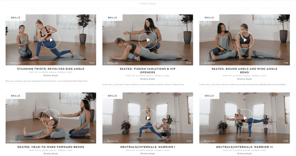 Check out Alo Moves entire section called How To Teach which features Briohny Smyth teaching how to cue 36 yoga poses in her signature Aligned Asana teaching method. As a graduate of Aligned Yoga School myself, I can attest that Bri is an amazing educator!