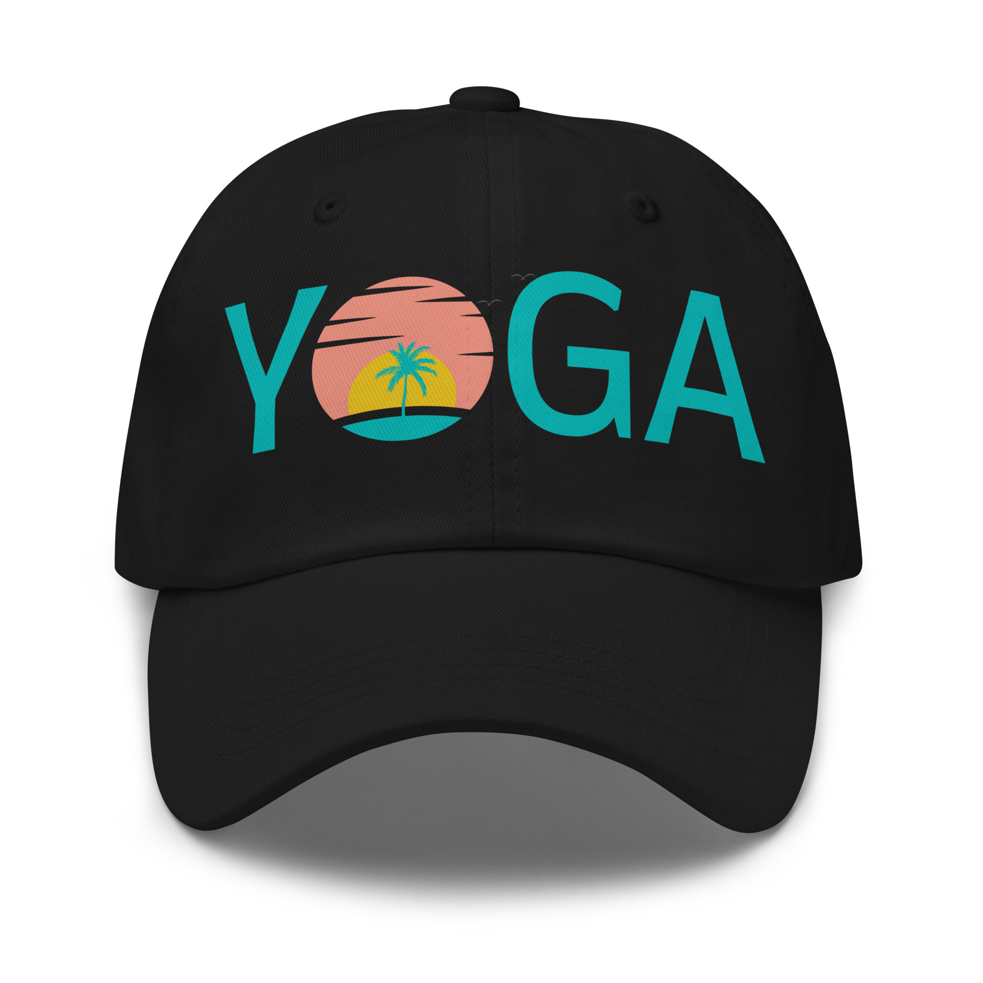 Our adjustable baseball style hat for yogis with our fun yoga sunset design is made of 100% chino cotton twill, which makes it extremely soft and durable.